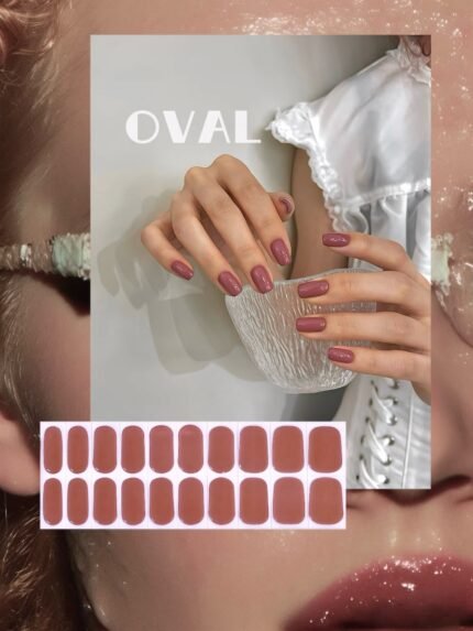 [Cure in 40s with Lamp] Soft Matte Dusty Rose Gel Nail Wraps (Oval Shape) – 20pcs Self-Adhesive, Instant Hardening Nail Tips