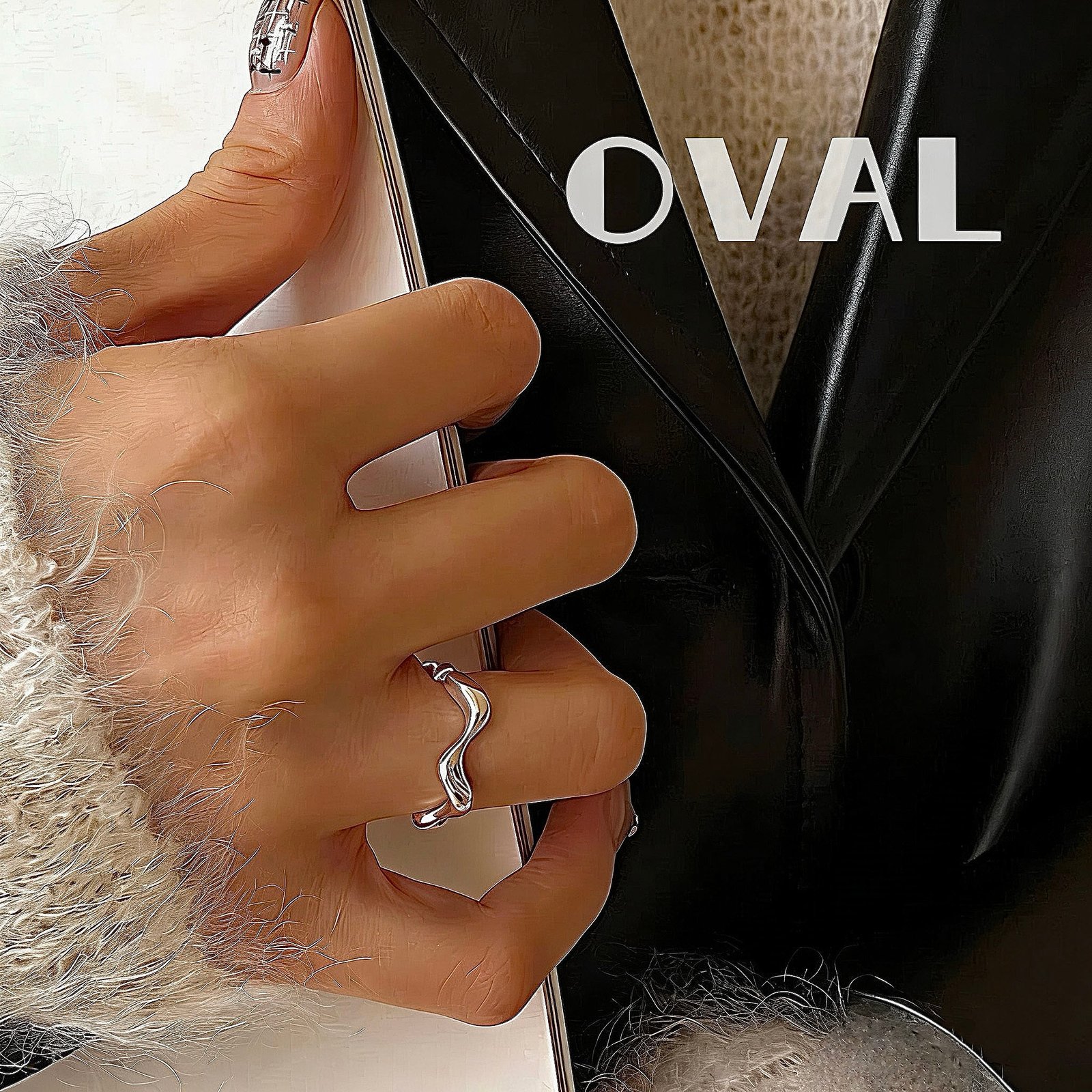 OVAL Liquid Wave Textured Sterling Silver Adjustable Ring | Minimalist Stackable Statement Ring