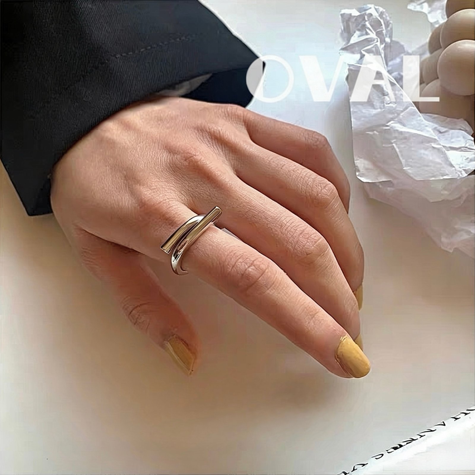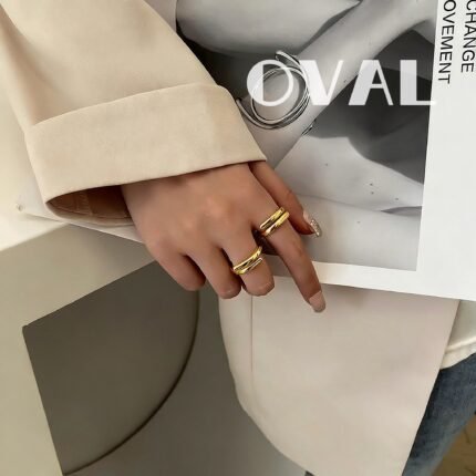 Crafted from 925 sterling silver with a matte finish, its sleek intertwined double-band design looks like two silver threads casually wrapped around your finger—minimalist yet memorable. The adjustable open fit works for all finger sizes: wear it alone to highlight slender fingertips, or pair it with your gel nail wraps (it shines with muted nudes, cool grays, and other low-saturation manicures) to instantly elevate your nail style with “effortless polish.”