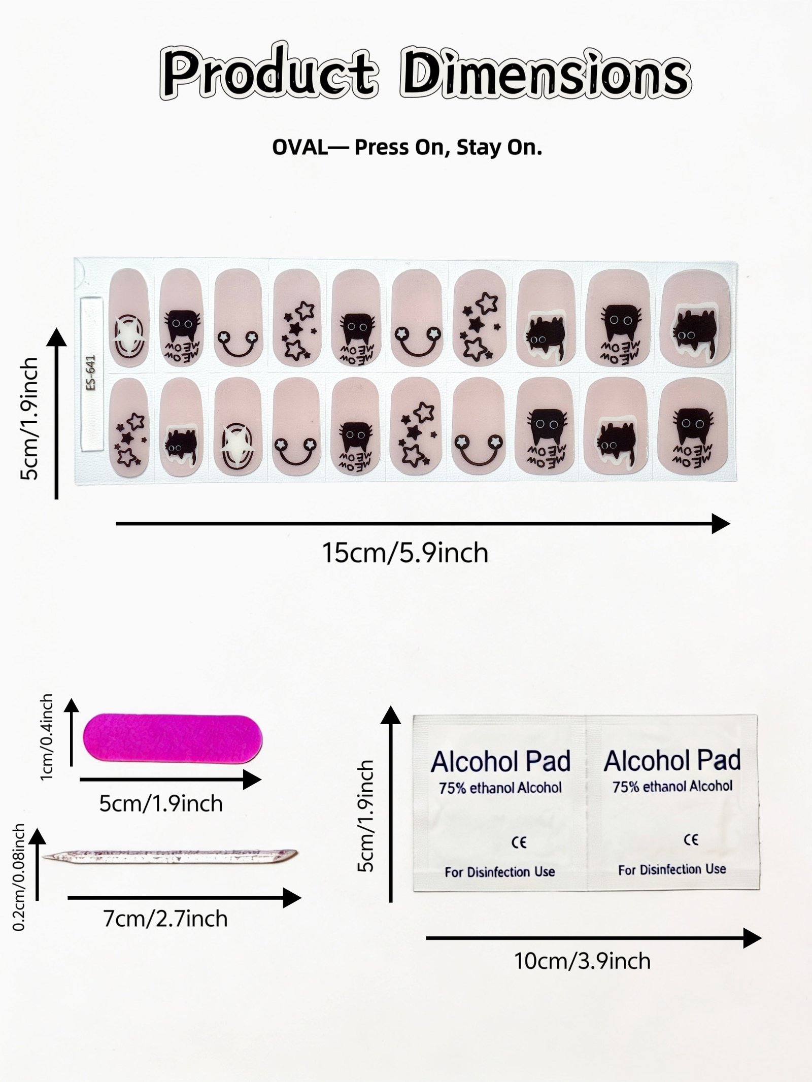 [Cure in 40s with Lamp] Sheer Nude Dark-Sweet Cat Gel Nail Wraps (Oval Shape) – 20pcs Self-Adhesive, Turns to Hard Nail Tips Instantly